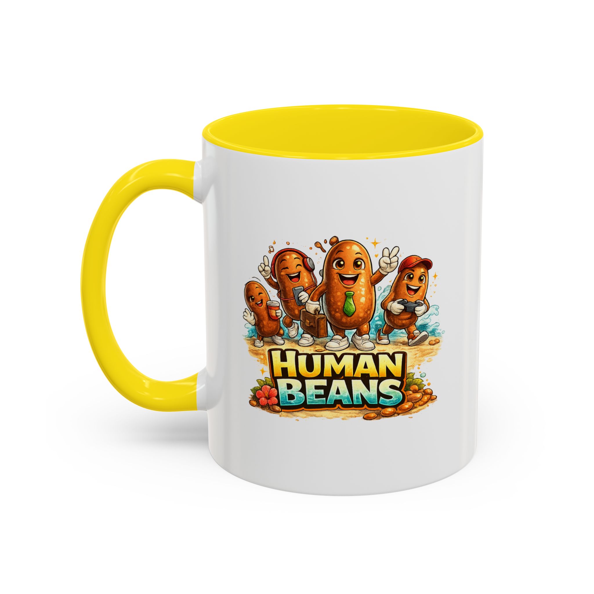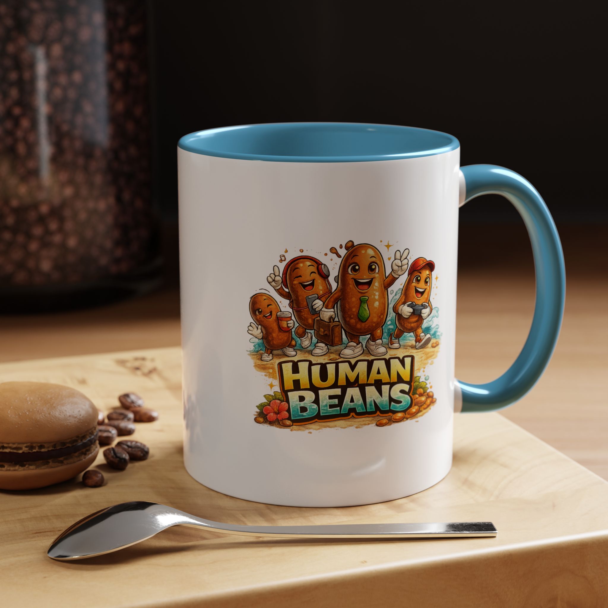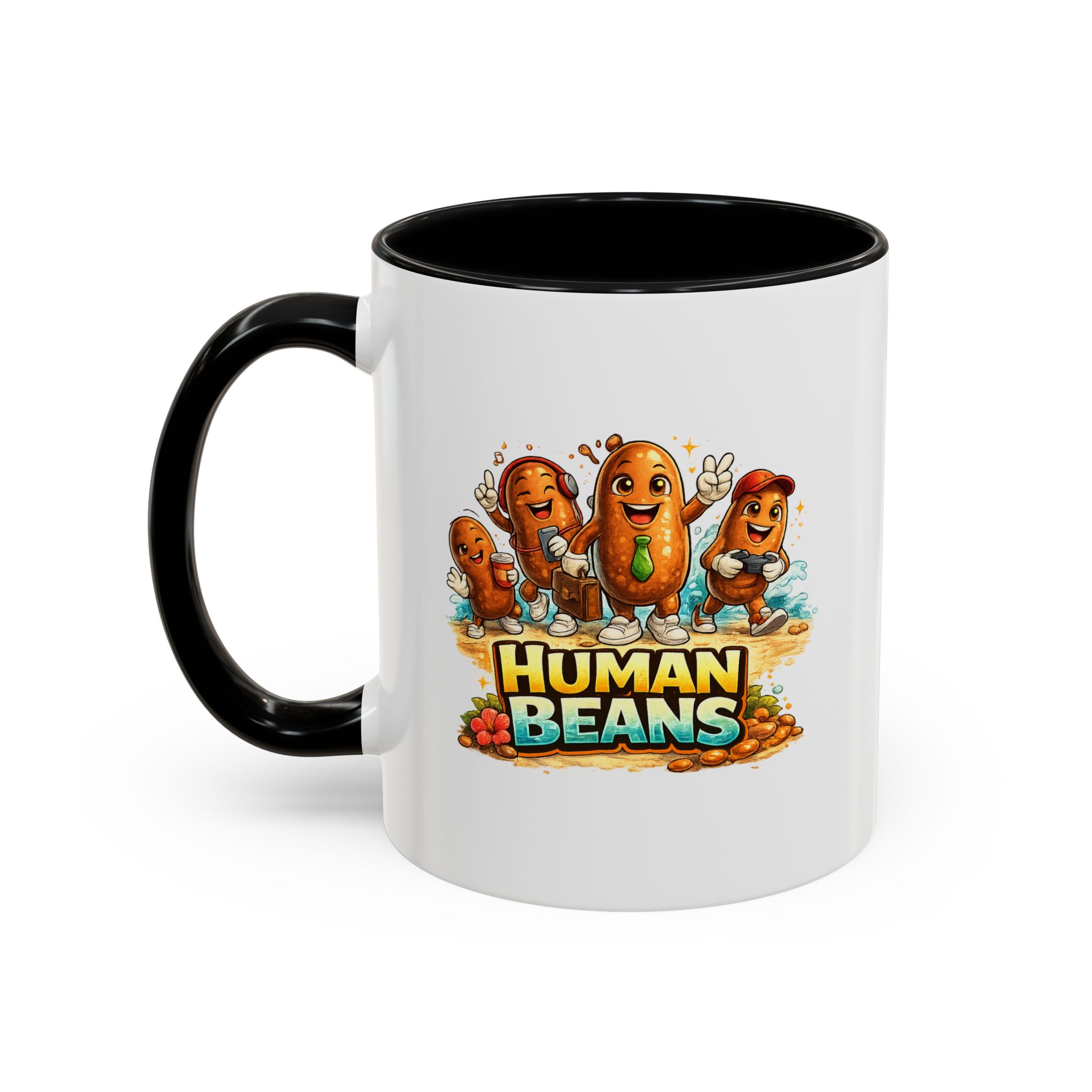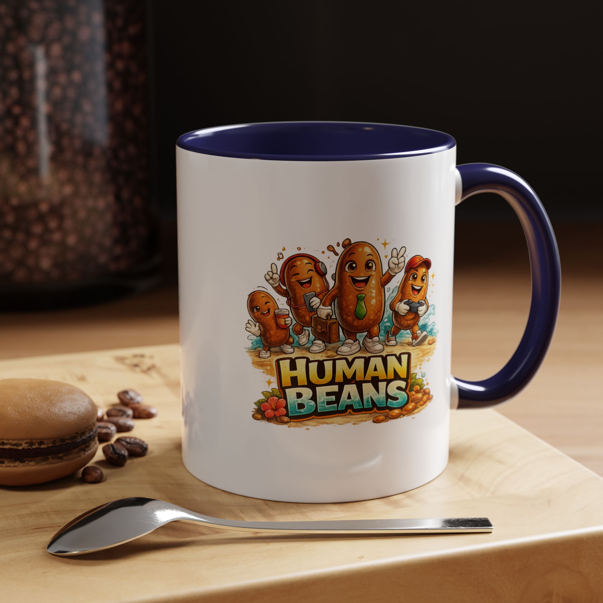 Human Beans Coffee Mug — Funny Cute Bean Characters Accent Mug (11oz)