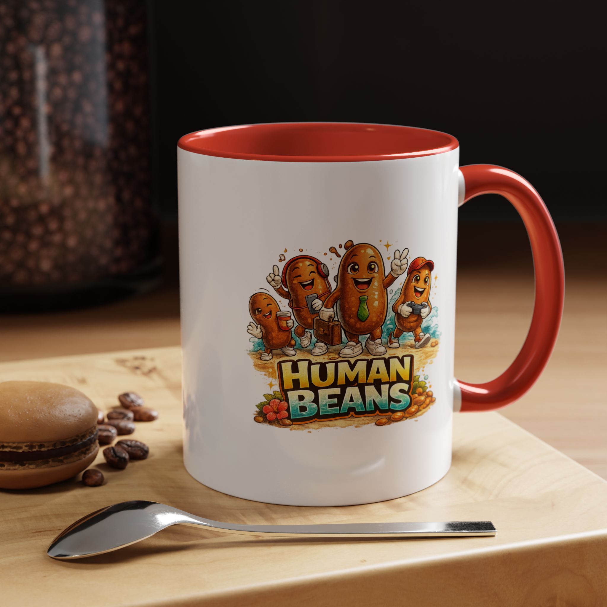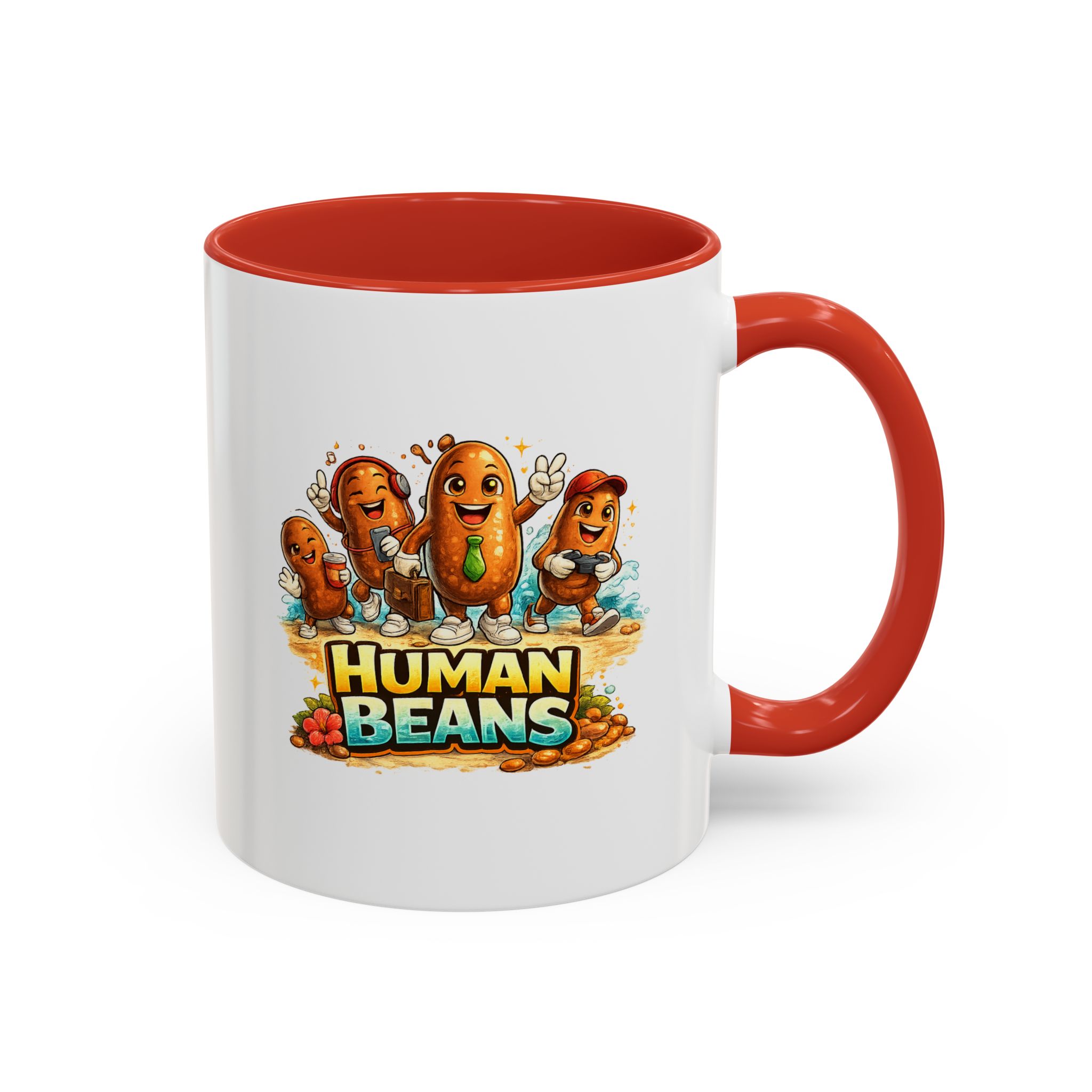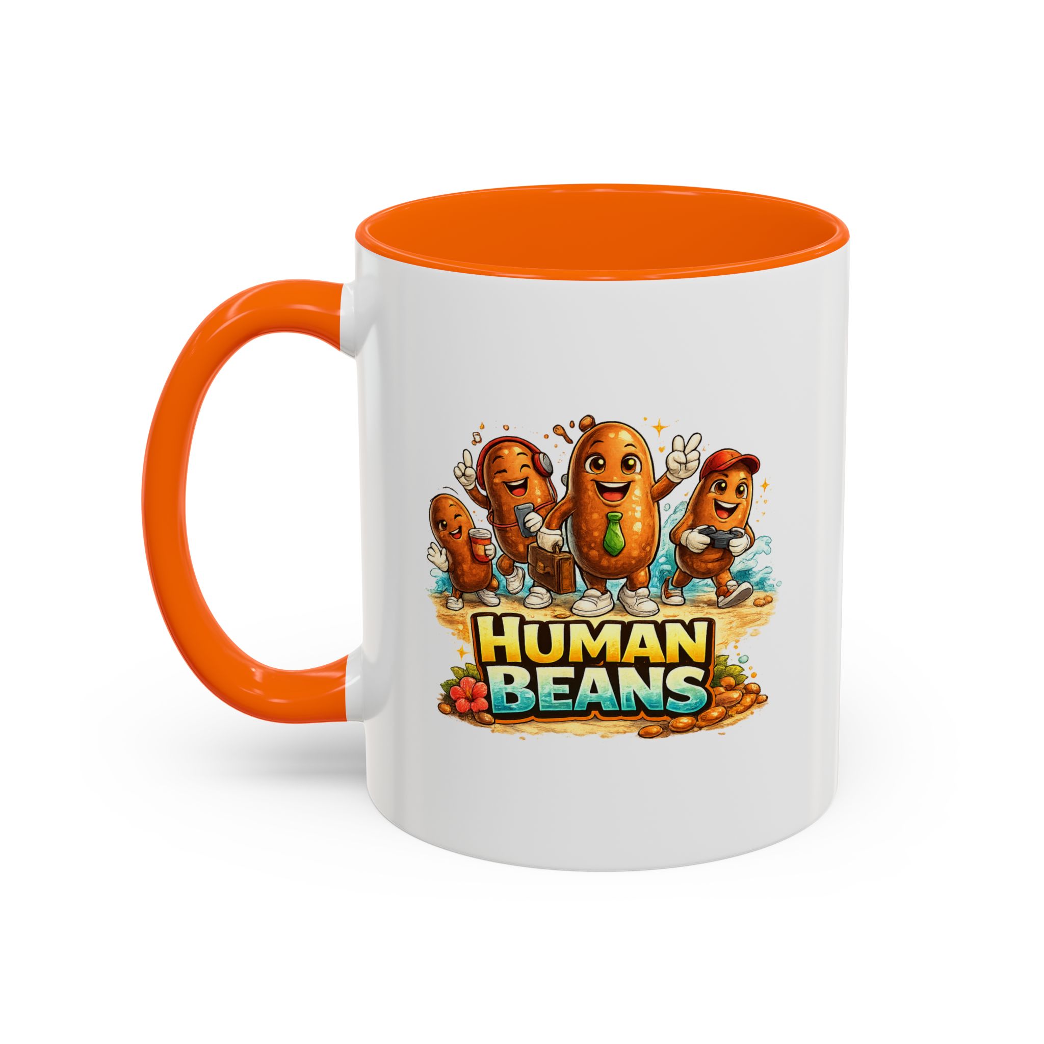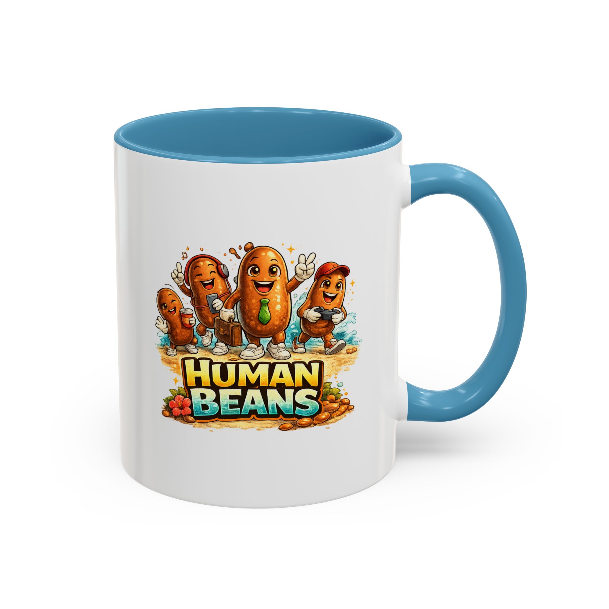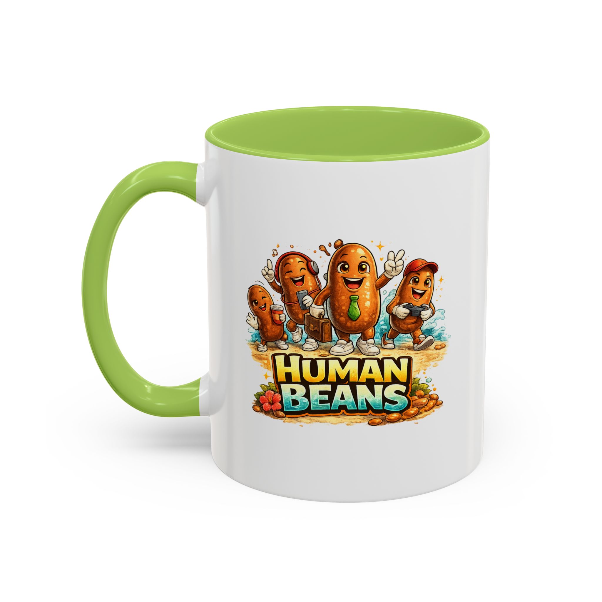 Human Beans Coffee Mug — Funny Cute Bean Characters Accent Mug (11oz)