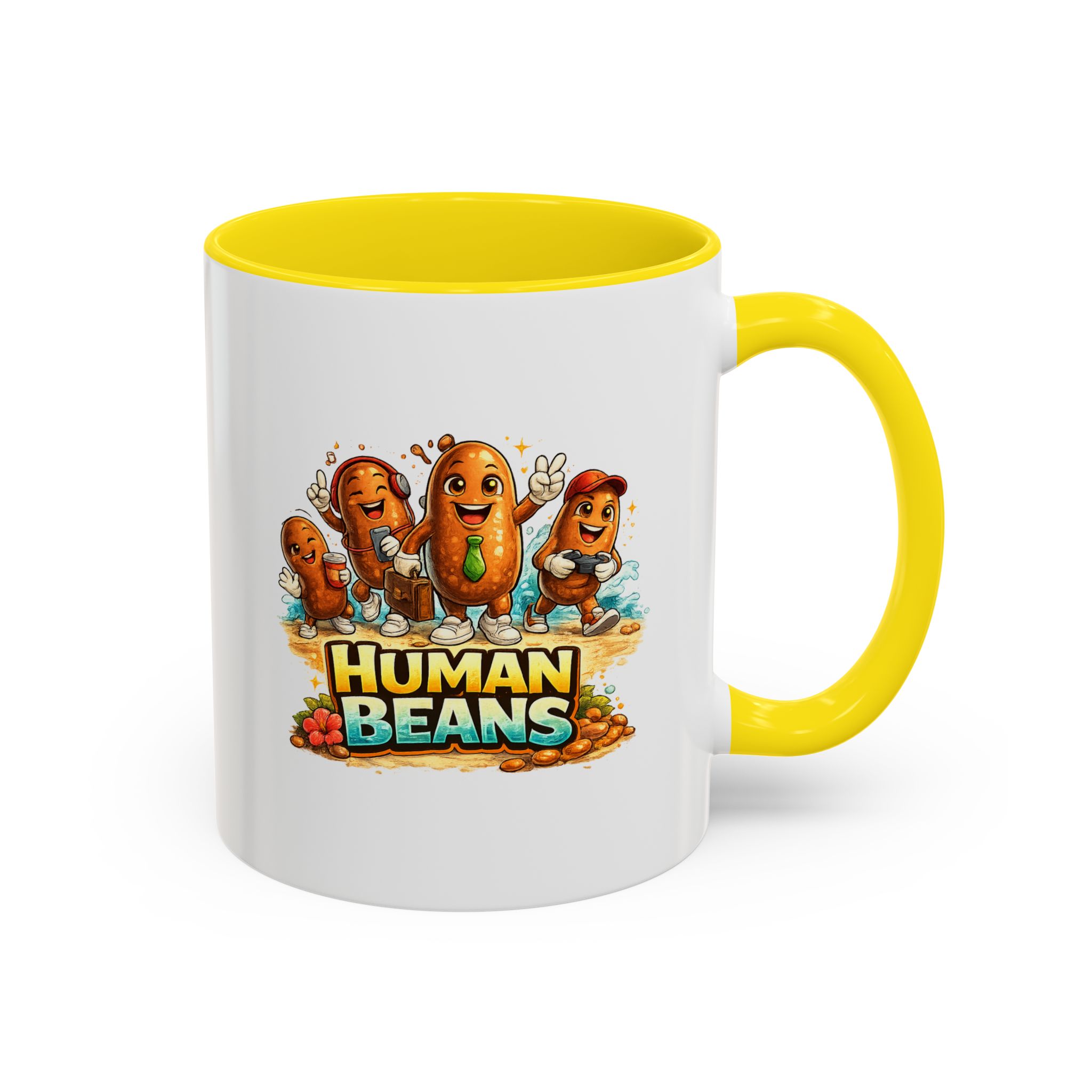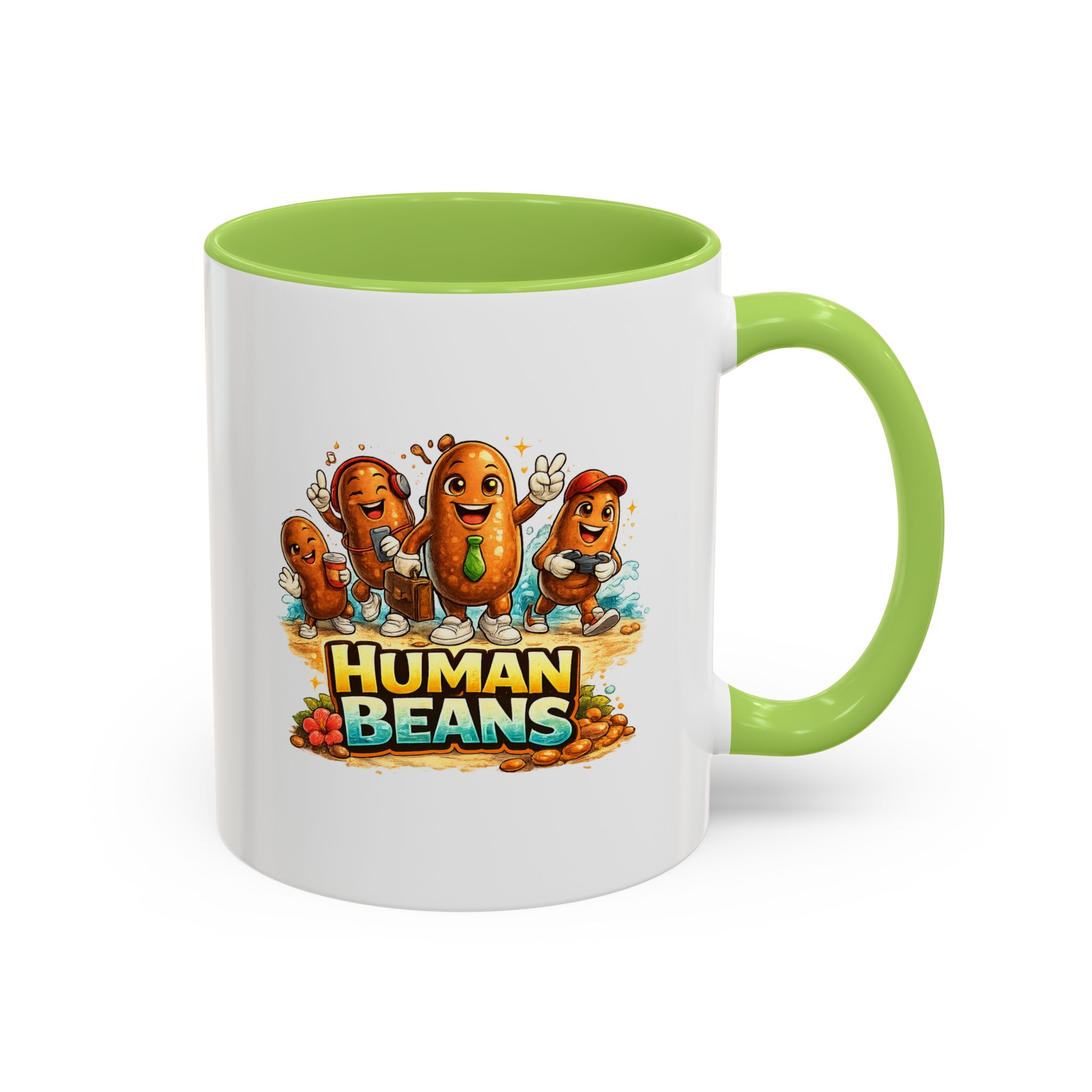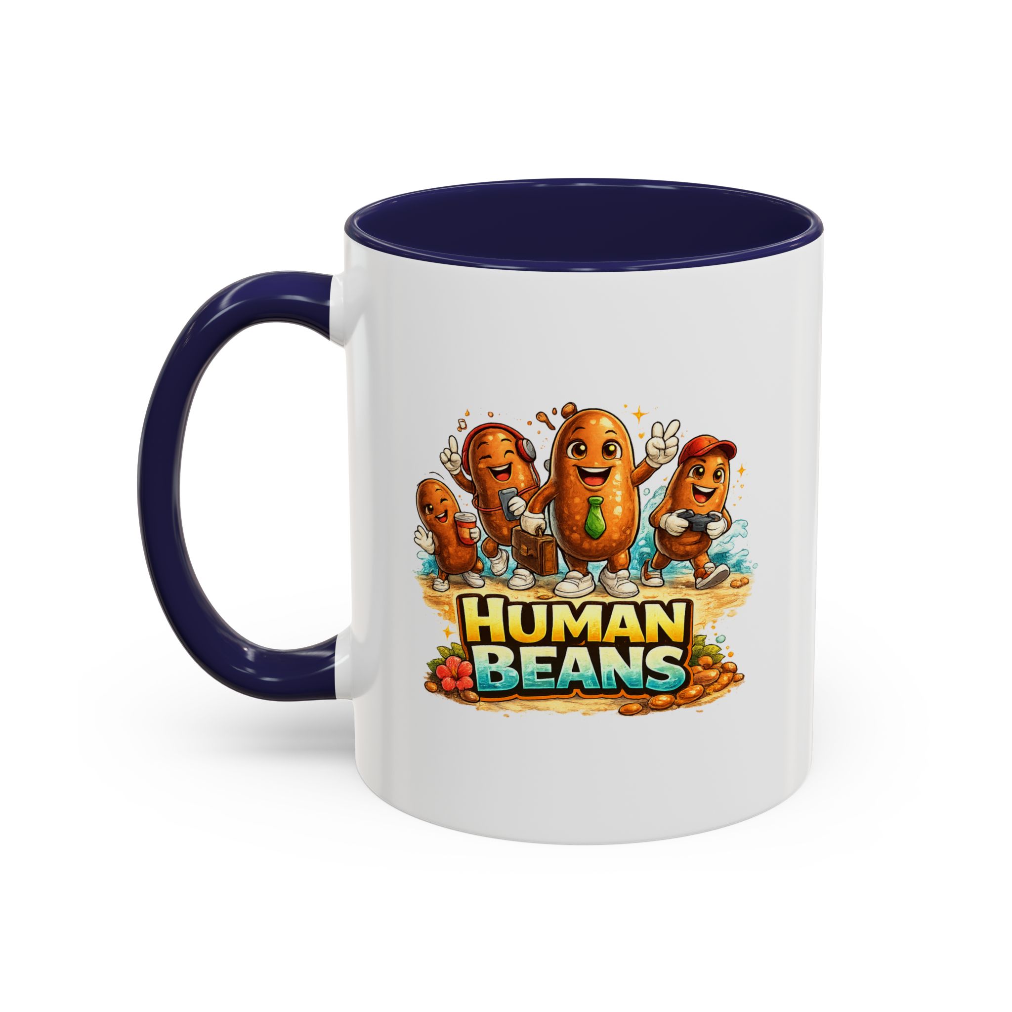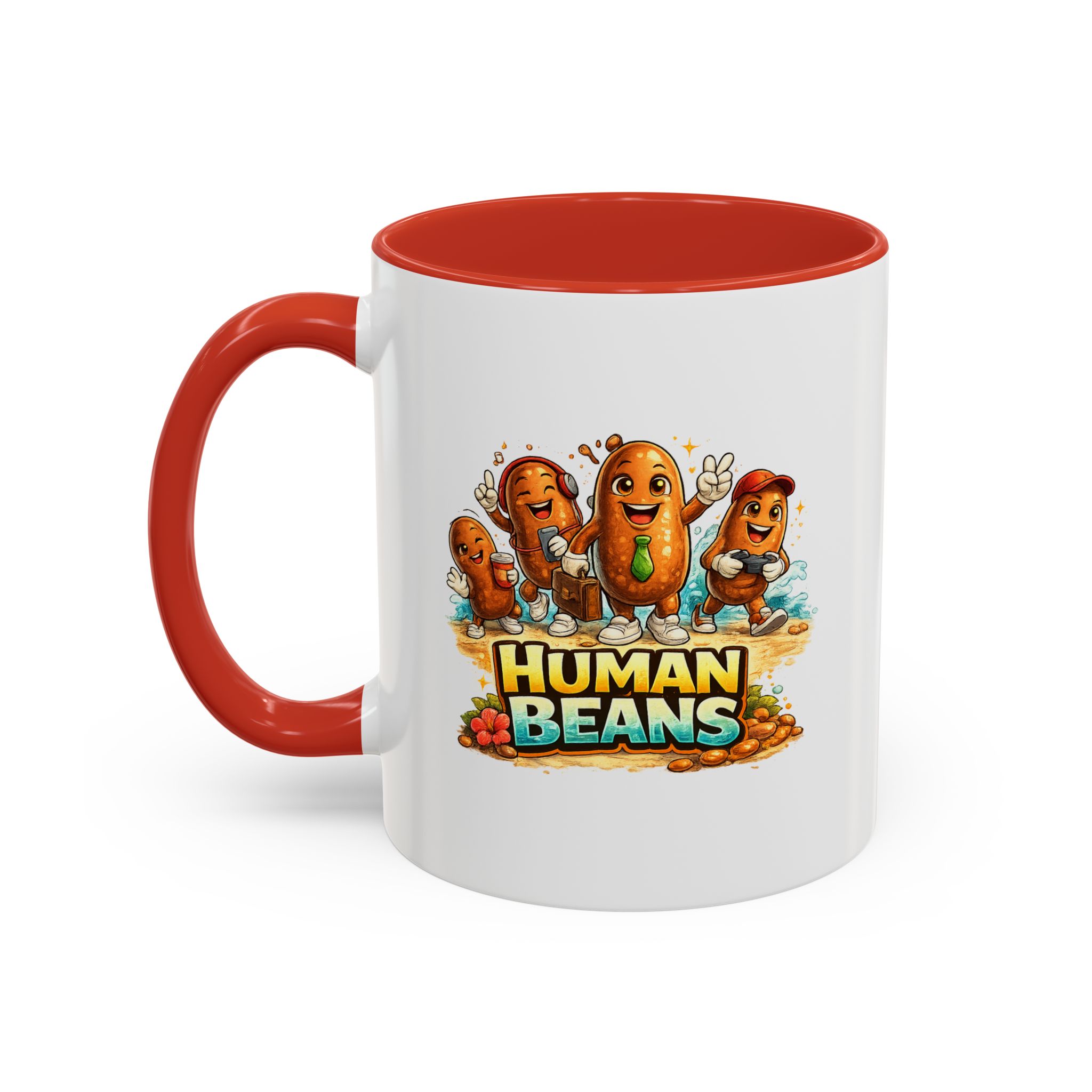 Human Beans Coffee Mug — Funny Cute Bean Characters Accent Mug (11oz)