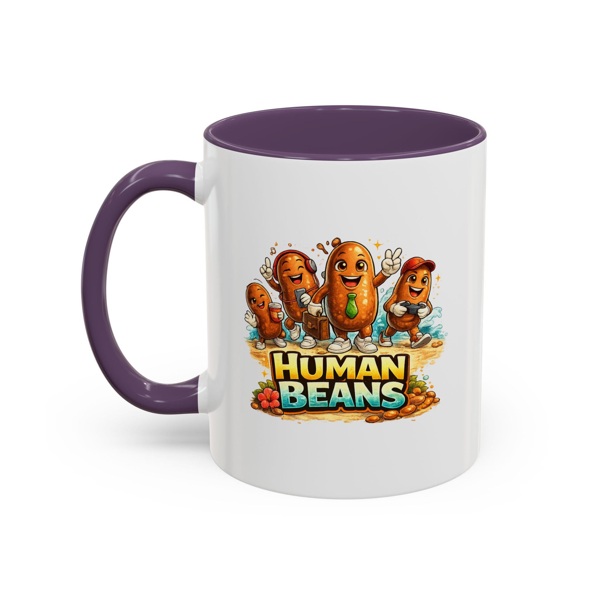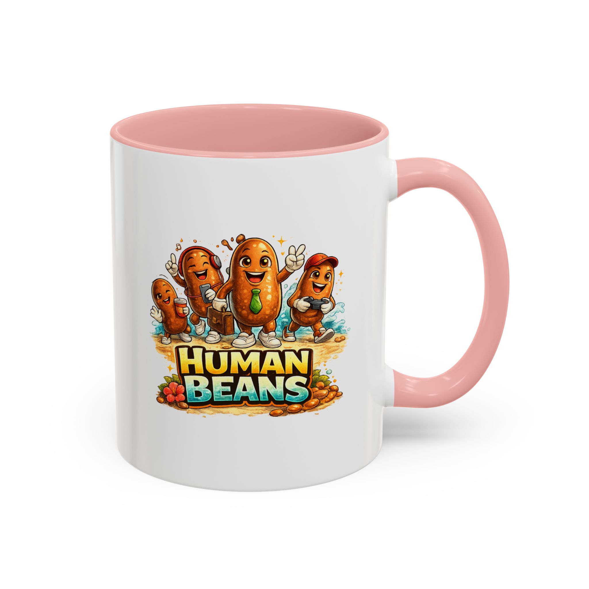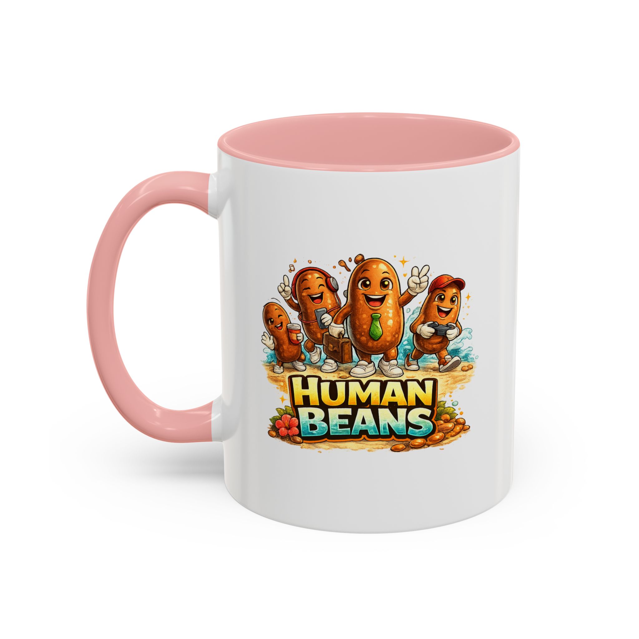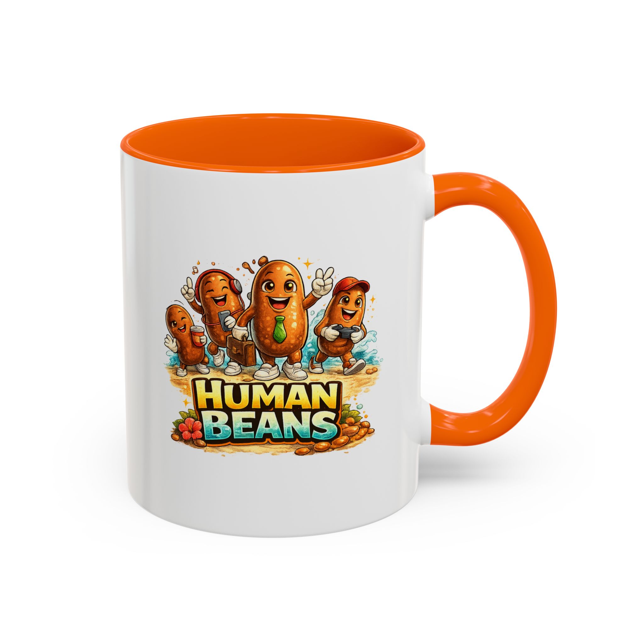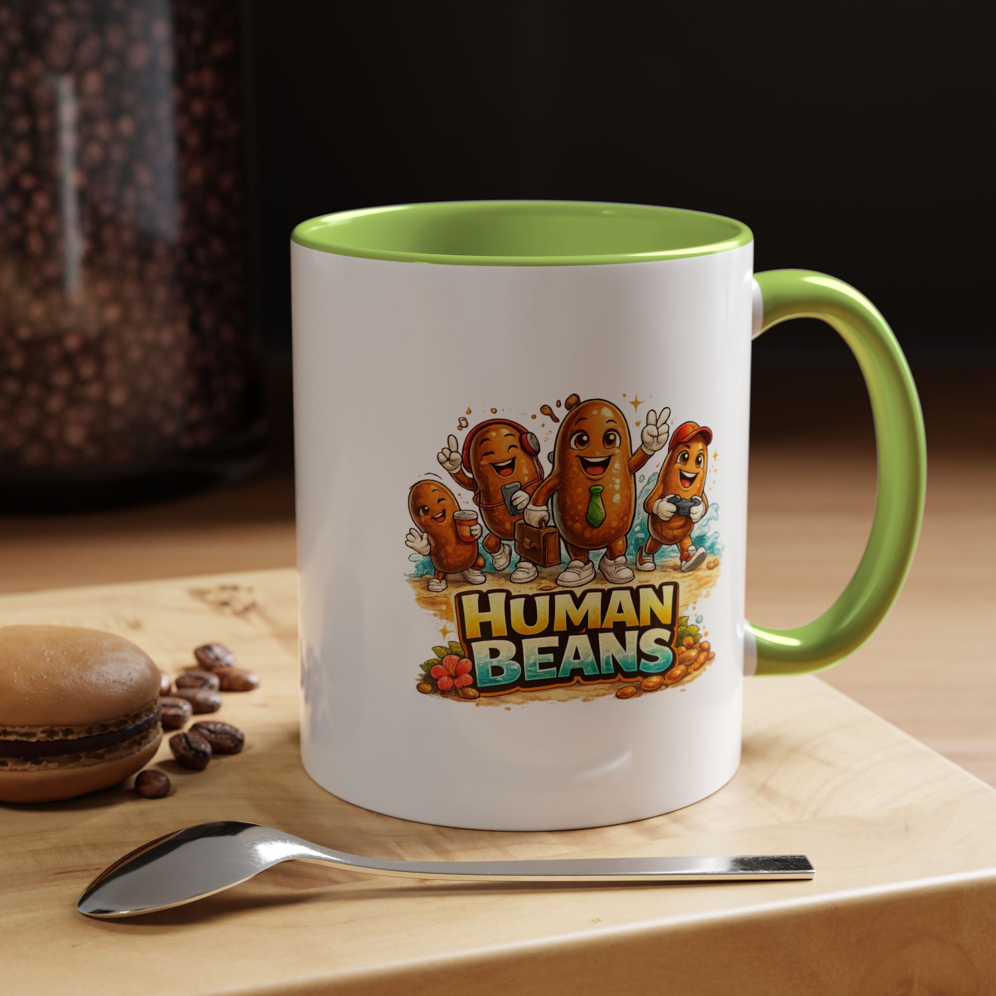 Human Beans Coffee Mug — Funny Cute Bean Characters Accent Mug (11oz)